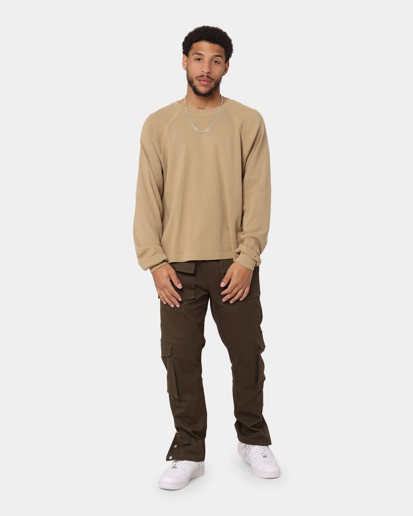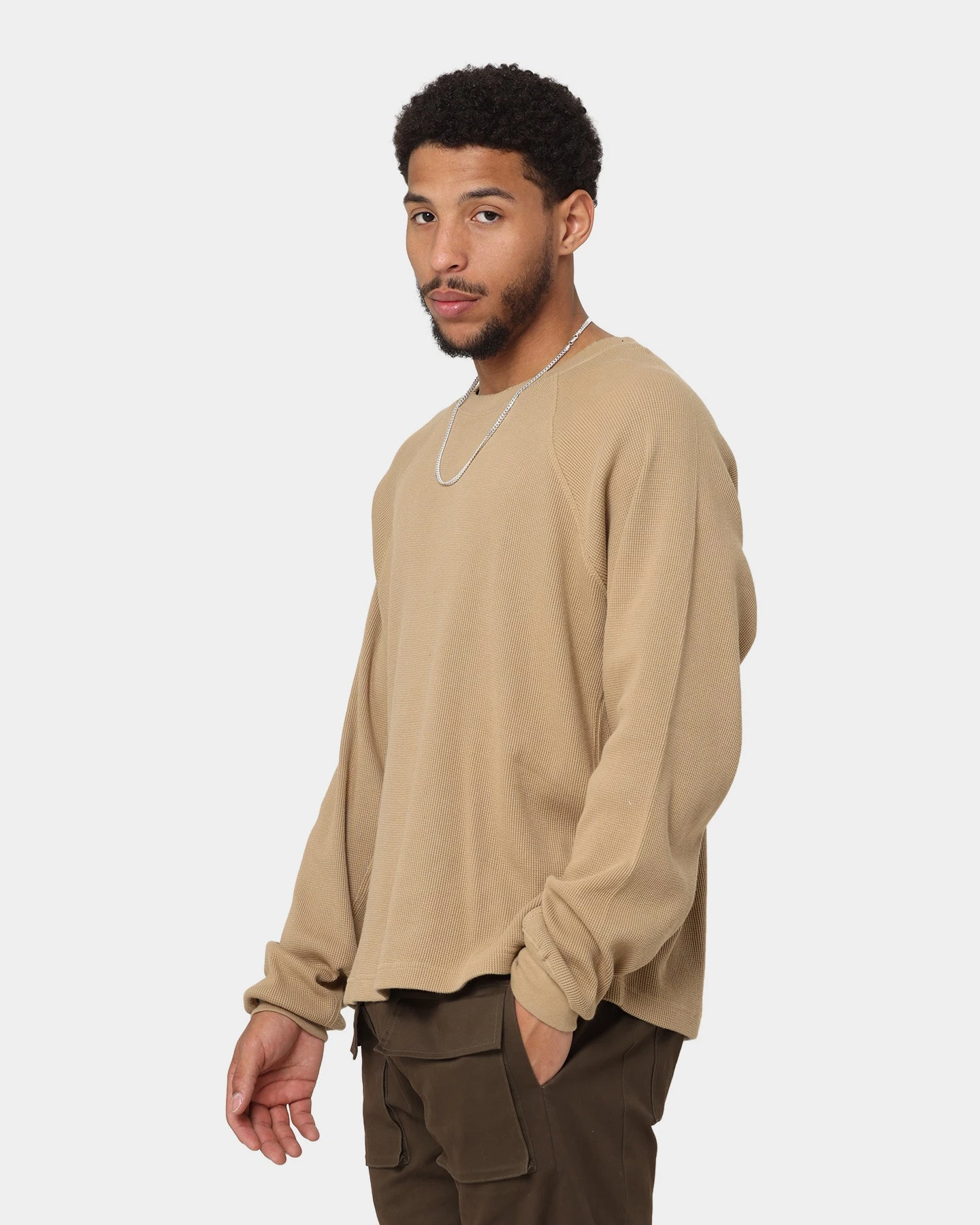 The tee you need, the Heavy Thermal Long Sleeve T-Shirt will keep you warm on those cold days. The heavy waffle fabric pairs with a ribbed crewneck and cuffs to lock in the heat. The sleeves are extra long for a relaxed look.