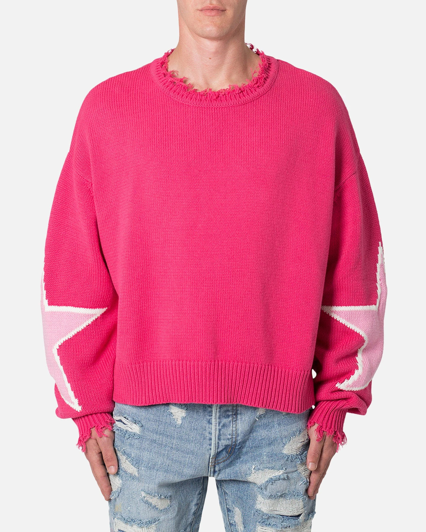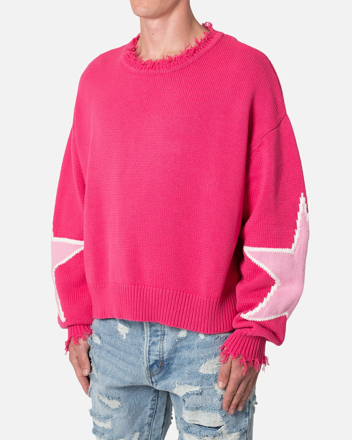 The Star Sweater is a custom knit sweater that is constructed from a synthetic yarn, features a relaxed fit, distressing at the neck and sweep, and is finished with jacquard stars on the sleeve. Heat up your ‘fits this season and cop it today at Culture Kings.